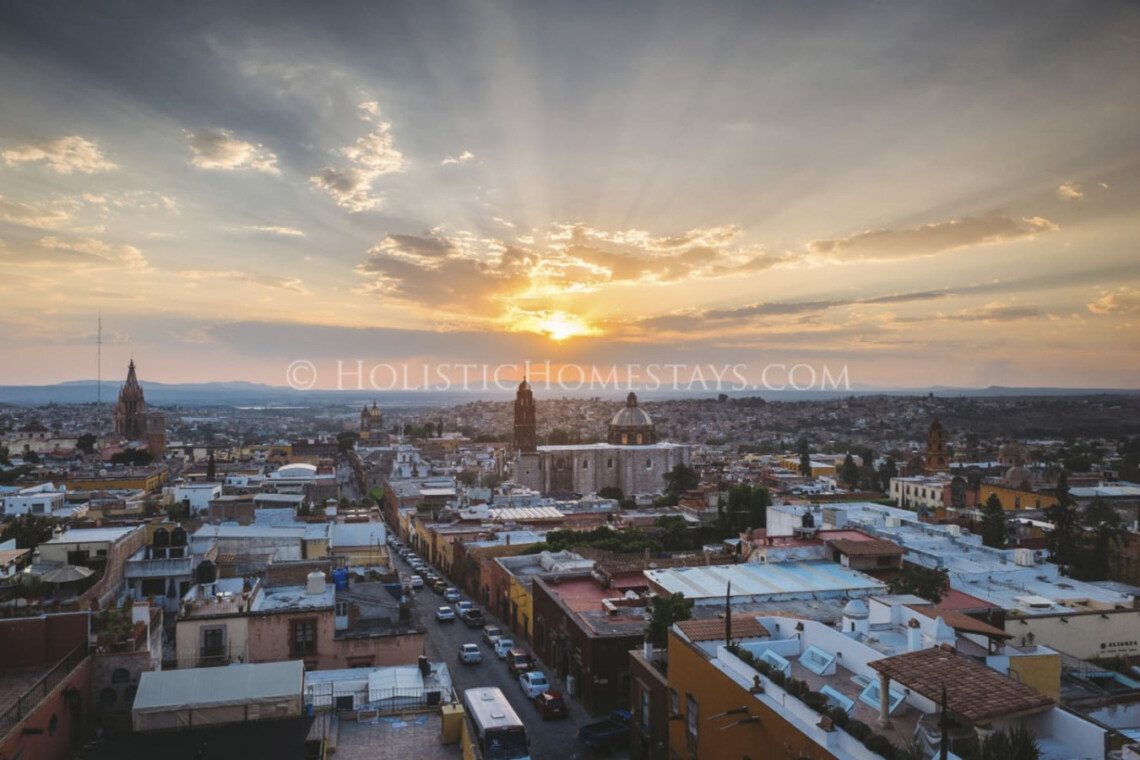 Right in the bustling heart of town, the lively historical and festive Centro has basically everything, from great restaurants, shops, sights, people, music. Right around the corner heading south with the one-way traffic, is the ‘Biblioteca’ or public library and Oratorio church. Or up the street you’ll arrive at the central Jardin area, where you’ll find the famous cathedral, La Parroquia, often full of people, mariachis, soon-to-be-wed couples, and occasional folkloric donkeys! In the other direction heading north against traffic, you enter into the adored and sought-after Colonia Guadalupe, home to some of San Miguel’s best mural graffiti art and organic restaurants, (Via Organica, Querencia, Josephine’s, Mio Bistrock). Hidalgo street is one of the main streets leading up to the central Jardin square, with shops, restaurants, cafes, and all kinds of surprises along the way. Everything you could need or want is just within walking distance!