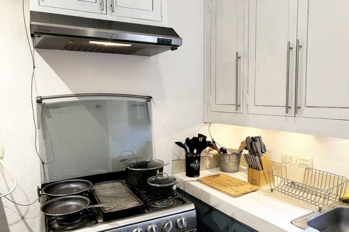 — Fully equipped kitchen – stove, oven, coffee maker, food processor, blender, utensils, plates, condiments, you name it.