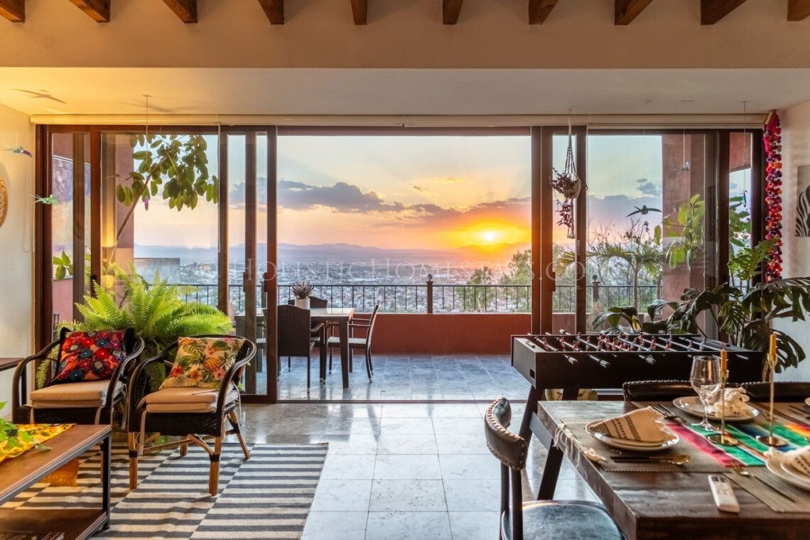 EL NIDO offers the best location in San Miguel — close enough to stroll into town, but far enough to enjoy true peace and quiet. Wake up to birdsong and fresh air. Enjoy your morning coffee with sweeping views from the balcony, and wind down with world-class sunsets that bathe the city in gold.