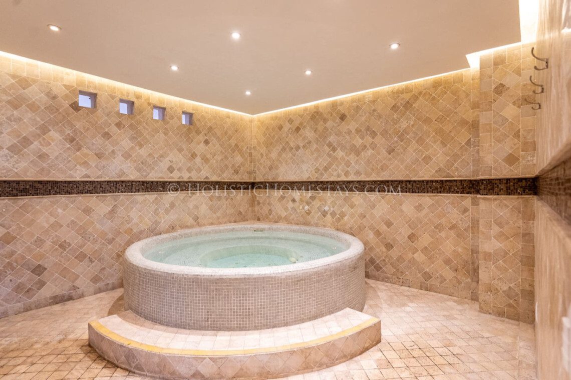 *The amenities available at Casa Lupitzin – Capilla de Piedra are shared communally and available by reservation only. Due to administrative restrictions of the housing complex Capilla de Piedra, guests can reserve up to 1 and a half hours per day for each amenity (pool, jacuzzi, sauna).